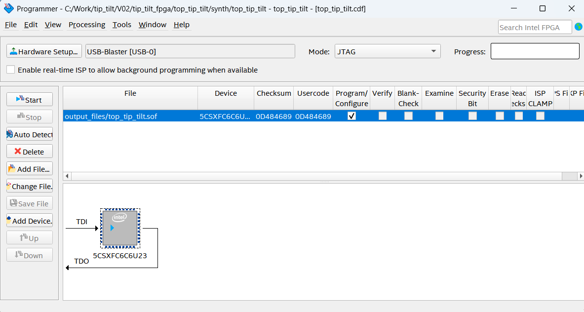 - Opened Quartus Programmer in JTAG mode as depicted in below picture.
