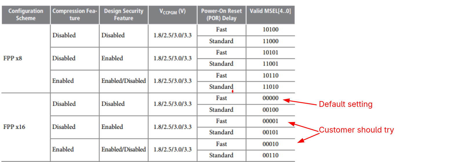 Can you make sure you have the MSEL set appropriately per the table below?