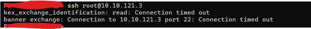 I cannot connect via SSH: ssh root@10.10.121.3 always ends with “Connection timed out”. (