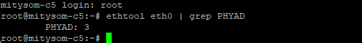I ran ethtool eth0 | grep PHYAD on my system, and it confirms that the PHY is detected at address 3, as shown in the attached screenshot.