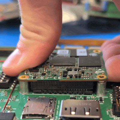 - Note that when removing the MitySOM-QC6490 the SOM should be removed by lifting up the left or right side first, as shown below. The Samtec SEARAY™ connectors can be "zippered" during mating/unmating.