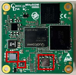 - The MitySOM-QC has three wafer level packages (outlined in red in the image below). Please take care to not touch or apply pressure to these packages when handling the SOM.